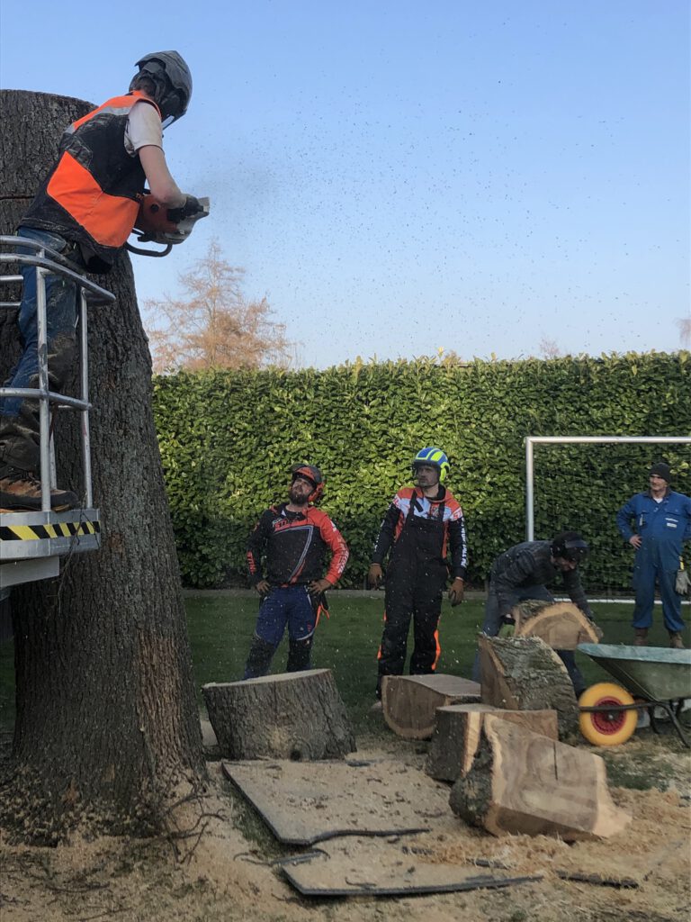 Wegens familieomstandigheden kon de kapper de klus niet afmaken en werden wij op het laatste moment ingehuurd. Het ging hier om 1 Beuk en 1 Eik van circa 80 cm doorsnee